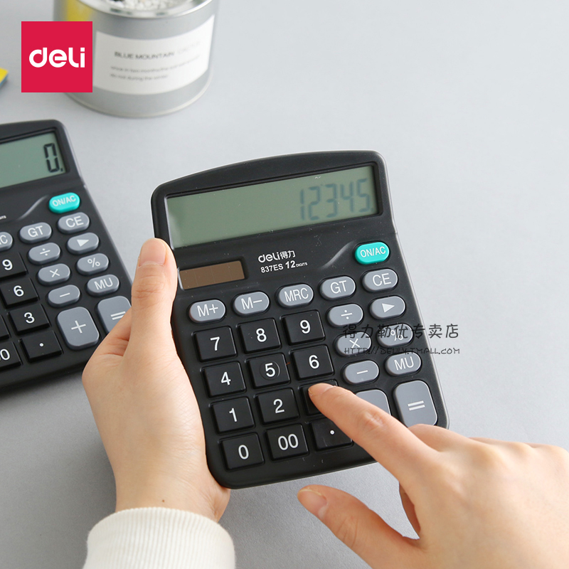 得力计算器837经济型太阳能双电源计算机大按键办公