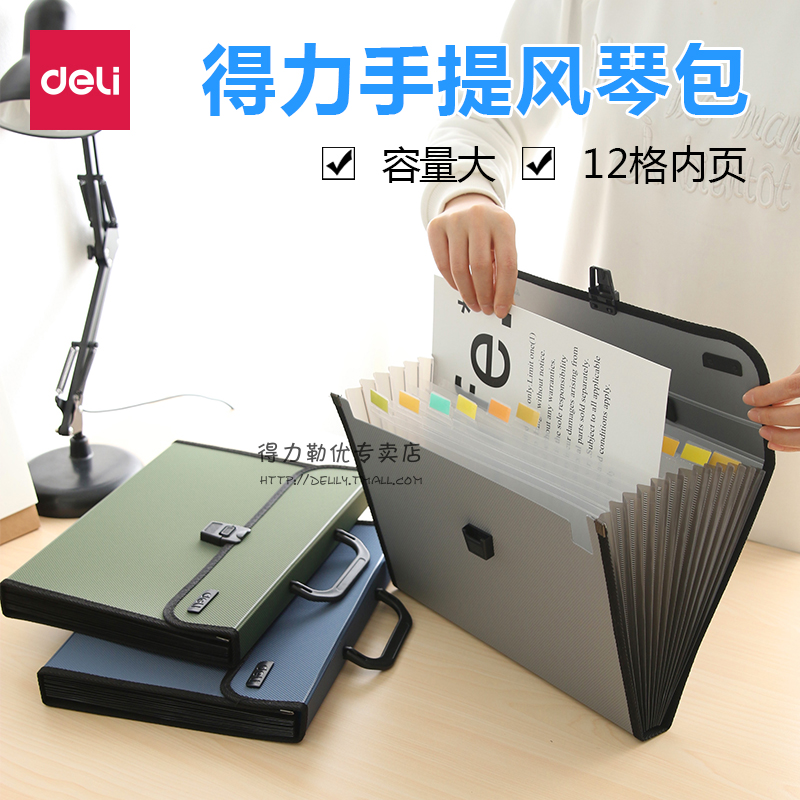 得力手提风琴包文件整理夹文件袋票据收纳文件包试卷夹A4文件包
